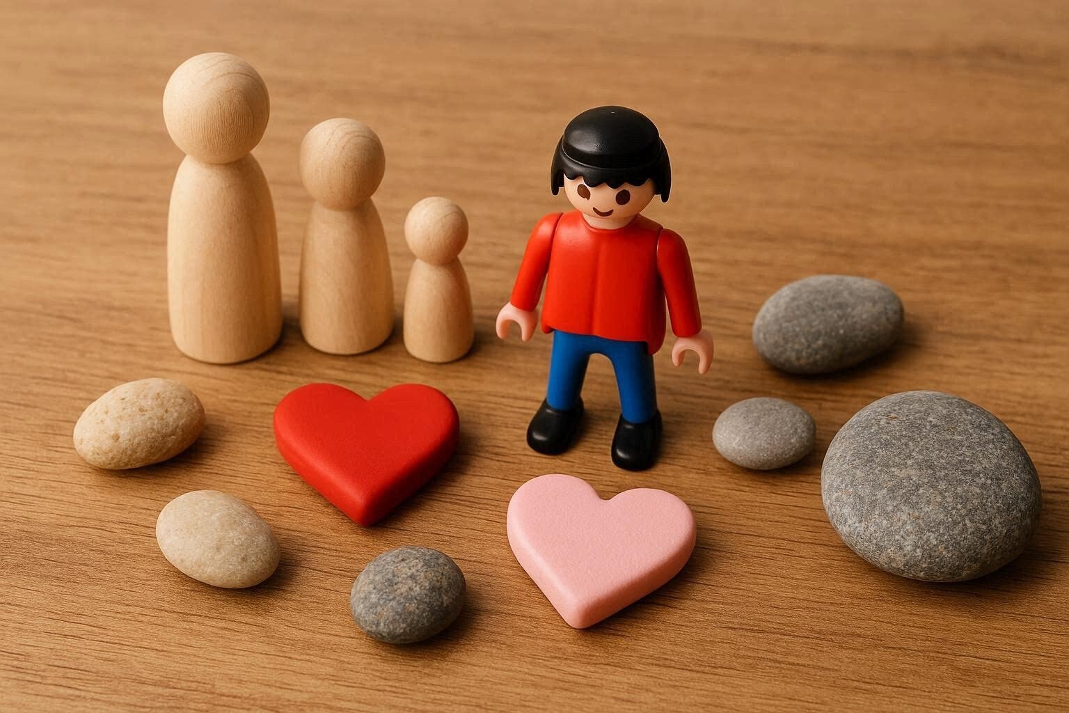 Ik werk ook graag met materialen om je leven inzichtelijk te maken. Dit kunnen teksten zijn, lintjes, poppetjes, bloemen, bedenk het maar en we kunnen het inzetten. Het is heel fijn om verschillende aspecten die belangrijk zijn in jouw leven op te schrijven, een plek te geven op tafel. Zo kan je kijken hoe het elkaar verbindt, hoe het zich met elkaar verhoudt op dit moment en hoe jij het zou willen. Om het zo duidelijk voor je te zien (letterlijk) kan je zien waar de schoen wringt, waar het juist goed gaat en wat je zelf nog zou kunnen ondernemen om het de richting te geven hoe jij dit zou willen.